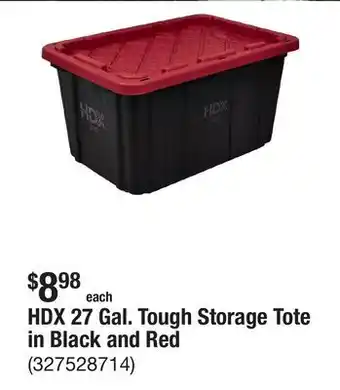 HDX 27 Gal. Tough Storage Tote in Black and Red deal in the weekly ad of The Home Depot