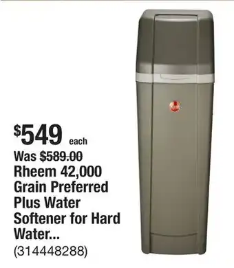 Rheem 42,000 Grain Preferred Plus Water Softener for Hard Water and Iron Reduction offers and online specials, straight from the current The Home Depot ad