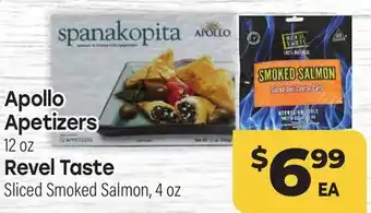 Apollo Apetizers 12 oz Revel Taste Sliced Smoked Salmon, 4 oz deal in the weekly ad of Tony’s Fresh Market