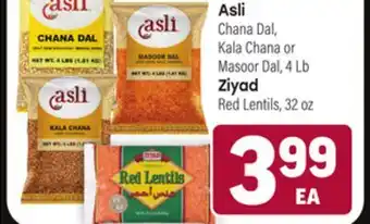 This offer is available in various stores, view all products to get the cheapest Asli Chana Dal, Kala Chana or Masoor Dal, 4Lb Ziyad Red Lentils, 32oz. If you'd like to find out whether this product has a bigger discount in another store, check the category 'Grocery'. You may also find these offers interesting: 4 lb. Swad CHANA DAL, MASOOR DAL, KALA CHANA, KABULI CHANA, OR MASOOR MALKA, Ziyad Red or Green Lentils & Sadaf Lentils Red, Green or Green Lentils.