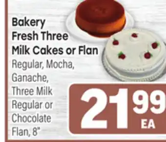 When is Bakery Fresh Three Milk Cakes or Flan on sale? or "I want to know if Bakery Fresh Three Milk Cakes or Flan will be discounted next week?" These are very common questions. Many people make a (shopping) list, with products that they are looking to buy next week. That’s why we always post next week’s flyers first. So you know exactly whether you need to wait a while before making a purchase or when to get it at the cheapest price. Keep an eye on our website to see if next week’s flyer has a deal on Bakery Fresh Three Milk Cakes or Flan.Will there be a promotion Bakery Fresh Three Milk Cakes or Flan next week?