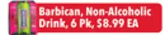 This offer is available in various stores, view all products to get the cheapest Barbican, Non-Alcoholic Drink. If you'd like to find out whether this product has a bigger discount in another store, check the category 'Grocery'. You may also find these offers interesting: Barbican Non-Alcoholic Drink 6 Pk Dana Nublus Cheese with Nigella Seeds, Athletic Non-Alcoholic Non-Alcoholic Beer & Long Drink Zero Sugar or Non-Alcoholic.