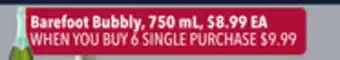 This offer is available in various stores, view all products to get the cheapest Barefoot Bubbly. If you'd like to find out whether this product has a bigger discount in another store, check the category 'Grocery'. You may also find these offers interesting: Barefoot Bubbly, Ballatore, Bogle, Apothic or Edna Valley, Barefoot Wine & Barefoot Pink Moscato, 750ml.