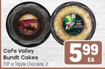 This offer is available in various stores, view all products to get the cheapest Cafe Valley Bundt Cakes. If you'd like to find out whether this product has a bigger discount in another store, check the category 'Grocery'. You may also find these offers interesting: Café Valley Bundt Cakes, Cafe Valley Chocolate, Lemon or 7-Up Bundt Cakes & Café Valley Mini Bundt Cake.