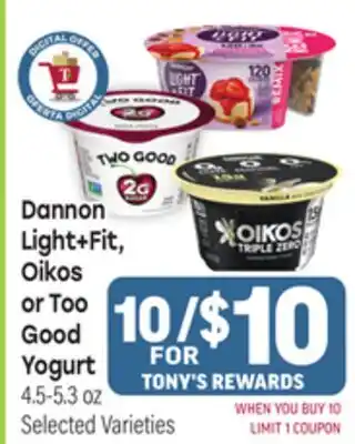 Dannon Light+Fit, Oikos or Too Good Yogurt Deal at Tony’s Fresh Market