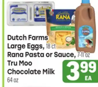 Dutch Farms Large Eggs, 18ct, Rana Pasta or Sauce, 7-11oz, Tru Moo Chocolate Milk 64oz