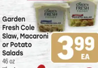 This offer is available in various stores, view all products to get the cheapest Garden Fresh Cole Slaw, Macaroni or Potato Salads. If you'd like to find out whether this product has a bigger discount in another store, check the category 'Grocery'. You may also find these offers interesting: Signature Select Select Cole Slaw, Cole Slaw, Potato or Potato or Macaroni Macaroni Salad Salad, Weis Fresh from the Field Supreme Crispy or Garden Salads & Fresh Express Salads.
