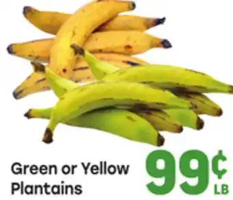 This offer is available in various stores, view all products to get the cheapest Green or Yellow Plantains. If you'd like to find out whether this product has a bigger discount in another store, check the category 'Grocery'. You may also find these offers interesting: GREEN GIANT YELLOW ONIONS, Bananas Plantains & FRESH RIPE PLANTAINS.