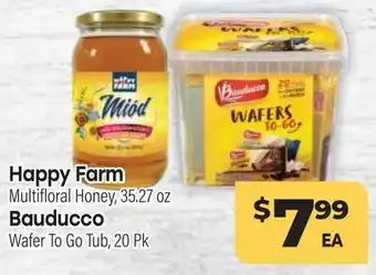 In which store will Happy Farm Multifloral Honey, 35.27 oz Bauducco Wafer To Go Tub be on sale next week? These are some of the questions we get asked a lot. It’s only normal, nobody likes to pay too much! Our team keeps an eye on all deals and lists them online as soon as possible. So you can customize your (shopping) list with this week's offers and those of next week. Make sure to check next week’s Tony’s Fresh Market ad, some of the specials are only available next week or online.Frequently asked questions about Happy Farm Multifloral Honey, 35.27 oz Bauducco Wafer To Go Tub