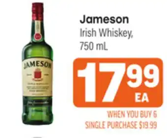 This Jameson Irish Whiskey is now on deal at Tony’s Fresh Market. All information about current prices, promotional conditions, and durations can be found on this page. Also check out other comparable deals and promotions related to Jameson Irish Whiskey, so you can always make the most cost-effective choice.The duration of the Jameson Irish Whiskey deal is from 28-01-2026 to 03-02-2026. If the deal is no longer valid, you can look at other comparable offers. You can also follow the product category to stay informed as soon as Jameson Irish Whiskey is on deal again at Tony’s Fresh Market. By comparing Jameson Irish Whiskey deals, you'll know whether it's wise to wait on a purchase because it might have been cheaper or might come up cheaper in a future deal. So keep an eye on our site to see if Jameson Irish Whiskey appears next week with a significant discount in the flyer.