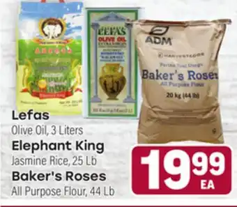 Lefas Olive Oil, 3 Liters, Elephant King Jasmine Rice, 25 Lb, Baker's Roses All Purpose Flour, 44 Lb Discount at Tony’s Fresh Market