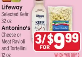 Lifeway Selected Kefir 32oz or Antonino's Cheese or Meat Ravioli and Tortellini 12oz Deal at Tony’s Fresh Market