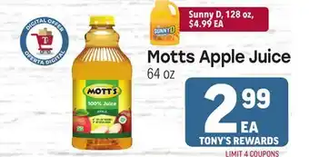 Motts Apple Juice deal in the weekly ad of Tony’s Fresh Market