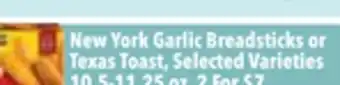New York Garlic Breadsticks or Texas Toast deal in the weekly ad of Tony’s Fresh Market