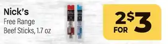 This offer is available in various stores, view all products to get the cheapest Nick's Free Range Beef Sticks. If you'd like to find out whether this product has a bigger discount in another store, check the category 'Grocery'. You may also find these offers interesting: Home Chef Fried or Baked Chicken, offer 2 & offer 3.