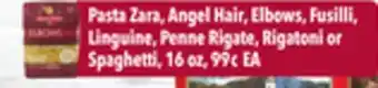 Pasta Zara, Angel Hair, Elbows, Fusilli, Linguine, Penne Rigate, Rigatoni or Spaghetti, 16 oz Deal at Tony’s Fresh Market