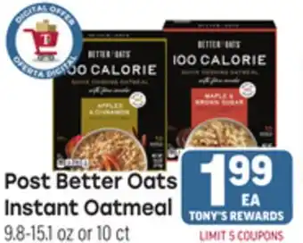 Post Better Oats Instant Oatmeal Deal at Tony’s Fresh Market