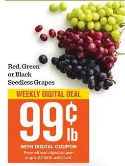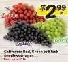 This offer is available in various stores, view all products to get the cheapest RED, GREEN OR TONY'S BLACK SEEDLESS GRAPES. If you'd like to find out whether this product has a bigger discount in another store, check the category 'Grocery'. You may also find these offers interesting: Red, Green or Black Seedless Grapes, Red, Green or Black Seedless Grapes & Red, Green or Black Seedless Grapes.