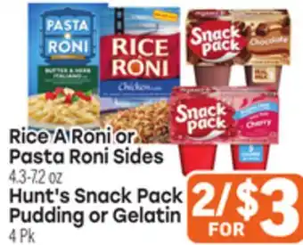 Rice A Roni or Pasta Roni Sides, 4.3-7.2 oz or Hunt's Snack Pack Pudding or Gelatin 4 pk.