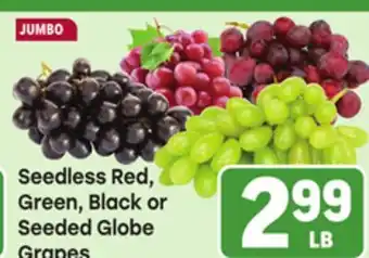 This offer is available in various stores, view all products to get the cheapest Seedless Red, Green, Black or Seeded Globe Grapes. If you'd like to find out whether this product has a bigger discount in another store, check the category 'Grocery'. You may also find these offers interesting: RED, GLOBE, SEEDLESS GRAPES, Red, Green or Black Seedless Grapes & Red, Green or Black Seedless Grapes.