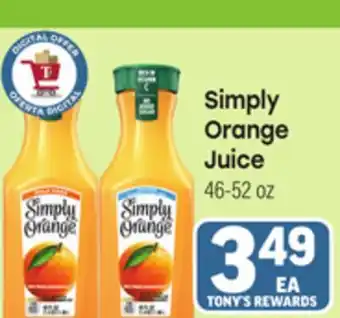 The Simply Orange Juice is now on sale at Tony’s Fresh Market, valid from 21-01-2026 to 27-01-2026. Check out the latest Tony’s Fresh Market weekly ad for more exclusive offers. Order Simply Orange Juice online via the Tony’s Fresh Market website or buy it at a nearby store. At Adspecials.us, you'll always find the best Simply Orange Juice deals. Compare the current offers to see if Simply Orange Juice will be featured in next week’s weekly ad. We post the weekly ads quickly, so you can plan your shopping smartly and stay updated on the latest Simply Orange Juice deals, discovering which stores have the best offers. Adjust your shopping list and check out the Tony’s Fresh Market weekly ad for next week for exclusive in-store promotions.Frequently asked questions about Simply Orange Juice