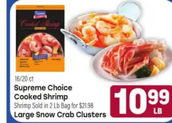Supreme Choice Cooked Shrimp or Large Snow Crab Clusters