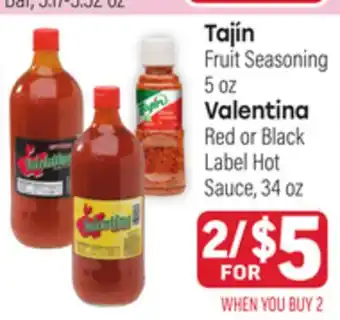Tajín Fruit Seasonin, 5oz or Valentina Red or Black Label Hot Sauce, 34oz