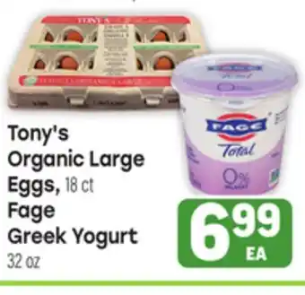 Tony's Organic Large Eggs, 18ct or Fage Greek Yogurt 32 oz Discount at Tony’s Fresh Market
