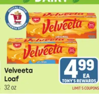 Velveeta Loaf Discount at Tony’s Fresh Market