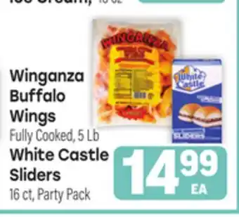 Winganza Buffalo Wings, Fully Cooked, 5 lb White Castle Sliders, 16 ct, Party Pack Discount at Tony’s Fresh Market