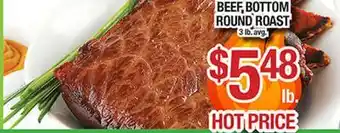 In which store will BEEF, BOTTOM ROUND ROAST be on sale next week? These are some of the questions we get asked a lot. It’s only normal, nobody likes to pay too much! Our team keeps an eye on all deals and lists them online as soon as possible. So you can customize your (shopping) list with this week's offers and those of next week. Make sure to check next week’s Torres Supermercado ad, some of the specials are only available next week or online.Frequently asked questions about BEEF, BOTTOM ROUND ROAST