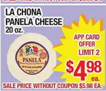 This offer is available in various stores, view all products to get the cheapest LA CHONA PANELA CHEESE. If you'd like to find out whether this product has a bigger discount in another store, check the category 'Grocery'. You may also find these offers interesting: La Chona OAXACA CHEESE, FUD Fresh Sliced Turkey Ham or La Chona Oaxaca Chona Oaxaca Cheese & FUD Panela Cheese or Mild Head Cheese.