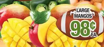 This offer is available in various stores, view all products to get the cheapest LARGE MANGOS. If you'd like to find out whether this product has a bigger discount in another store, check the category 'Grocery'. You may also find these offers interesting: HASS AVOCADOS, EXTRA LARGE MANGOS, Mission Mangos & 10 ct Mangos.