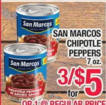This offer is available in various stores, view all products to get the cheapest SAN MARCOS CHIPOTLE PEPPERS. If you'd like to find out whether this product has a bigger discount in another store, check the category 'Grocery'. You may also find these offers interesting: San Marcos Whole Jalapeño, San Marcos Whole Jalapeños & Chipotle Peppers or Whole Jalapeños.