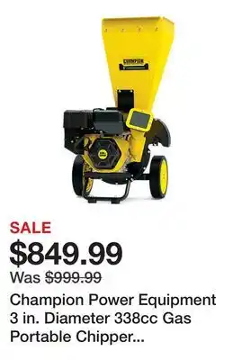Current Champion Power Equipment 3 in. Diameter 338cc Gas Portable Chipper Shredder with Collection Bag deal at Tractor Supply Company from 17-02 until 23-02.