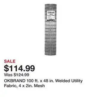 This OKBRAND 100 ft. x 48 in. Welded Utility Fabric, 4 x 2in. Mesh is available in the following branches based on your set location: