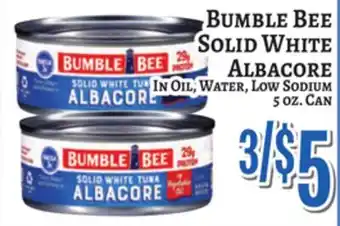 This offer is available in various stores, view all products to get the cheapest Bumble Bee SOLID WHITE ALBACORE. If you'd like to find out whether this product has a bigger discount in another store, check the category 'Grocery'. You may also find these offers interesting: Bumble Bee Solid White Tuna, Bumble Bee Solid White Tuna & BUMBLE BEE SOLID WHITE TUNA.