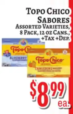 This offer is available in various stores, view all products to get the cheapest TOPO CHICO SABORES. If you'd like to find out whether this product has a bigger discount in another store, check the category 'Grocery'. You may also find these offers interesting: Topo Chico Water, Karbach, Topo Chico or Saint Arnold & Topo Chico Mineral Water.