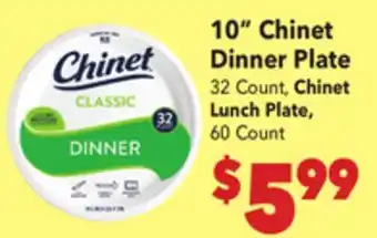 In which store will 10 Chinet Dinner Plate be on sale next week? These are some of the questions we get asked a lot. It’s only normal, nobody likes to pay too much! Our team keeps an eye on all deals and lists them online as soon as possible. So you can customize your (shopping) list with this week's offers and those of next week. Make sure to check next week’s Vallarta Supermarkets ad, some of the specials are only available next week or online.Frequently asked questions about 10 Chinet Dinner Plate