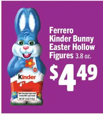 The price of Ferrero Kinder Bunny Easter Hollow Figures can be found at the top of the page, together with the dates during which the offer is available. You can also check the price in the current Vallarta Supermarkets weekly ad or on the Vallarta Supermarkets website. Promotional offers assure you of buying Vallarta Supermarkets products at the lowest price.