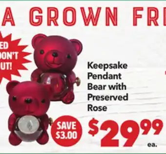 Keepsake Pendant Bear with Preserved Rose deals and online offers from the current Vallarta Supermarkets weekly ad