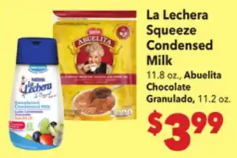 This offer is available in various stores, view all products to get the cheapest La Lechera Squeeze Condensed Milk. If you'd like to find out whether this product has a bigger discount in another store, check the category 'Grocery'. You may also find these offers interesting: La Lechera Condensed Milk, 14 oz Nestlé Media Crema, 7.6 oz, Nestle La Lechera & KRASDALE SWEETENED CONDENSED MILK.