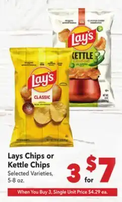 Current Lays Chips or Kettle Chips deal at Vallarta Supermarkets from 29-04 until 5-05.