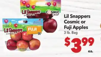 This offer is available in various stores, view all products to get the cheapest Lil Snappers Cosmic or Fuji Apples. If you'd like to find out whether this product has a bigger discount in another store, check the category 'Grocery'. You may also find these offers interesting: Washington Stemilt Lil Snappers Fuji, Gala Cosmic Crisp, Granny Smith, or Pink Lady Apples 3 1b, Washington Stemilt Lil Snappers Honeycrisp Apples & Fuji Apples.