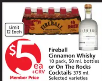 Fireball Cinnamon Whisky 10 pack, 50 ml. bottles or On The Rocks Cocktails 375 ml deal in the weekly ad of Vons