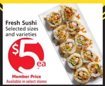 This offer is available in various stores, view all products to get the cheapest Fresh Sushi. If you'd like to find out whether this product has a bigger discount in another store, check the category 'Grocery'. You may also find these offers interesting: Fresh Sushi, Fresh Made Sushi & Weis Sushi.