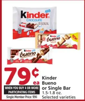 Kinder Bueno or Single Bar offers and online specials, straight from the current Vons ad