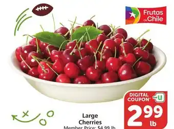 This Large Cherries is now on deal at Vons. All information about current prices, promotional conditions, and durations can be found on this page. Also check out other comparable deals and promotions related to Large Cherries, so you can always make the most cost-effective choice.The duration of the Large Cherries deal is from 04-02-2026 to 10-02-2026. If the deal is no longer valid, you can look at other comparable offers. You can also follow the product category to stay informed as soon as Large Cherries is on deal again at Vons. By comparing Large Cherries deals, you'll know whether it's wise to wait on a purchase because it might have been cheaper or might come up cheaper in a future deal. So keep an eye on our site to see if Large Cherries appears next week with a significant discount in the flyer.