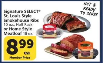Signature SELECT St. Louis Style Smokehouse Ribs 10 oz., Half Rack or Home Style Meatloaf 18 oz
