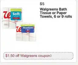 Walgreens Bath Tissue or Paper Towels, 6 or 9 rolls
